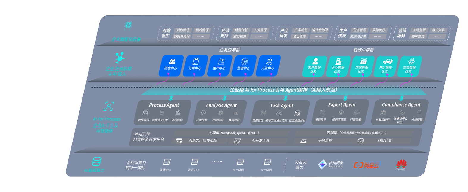欧博ABG问学智车解决方案是一套基于AI技术的汽车行业智能化系统,,覆盖从底层算力到顶层AI应用的全栈方案。。。方案由算力层、、、、模型层和应用层组成:算力层,,方案支持多种一体机配置,,,具备云端灵活部署、、、多云适配以及动态优化计算资源的能力;模型层,,欧博ABG问学平台版提供了企业级AI应用一站式构建与管理平台,,,,支持基于后训练强化技术的汽车企业专属模型的训练、、、、评测和运营;应用层,,欧博ABG问学DeepSeek版提供包括超级员工、、智能招采、、、智能营销、、智能客服、、AI for BI等一系列解决方案,,,,可助力汽车行业实现数字化转型,,,让管理更智能、、、响应更敏捷。。。。