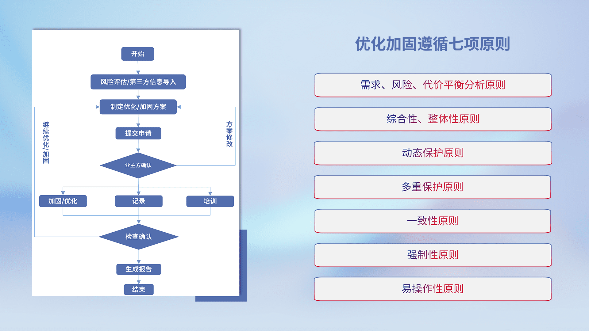 最大程度利用现有资产,,,对评估发现的问题进行封堵与整改,,,防止漏洞被利用,,,提升整体网络安全性,,,为客户带来高标准的优化加固服务。。。。